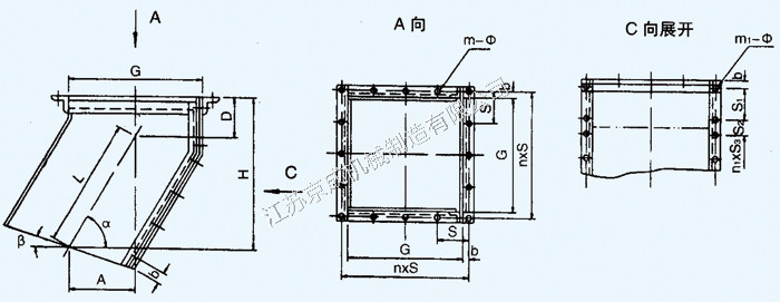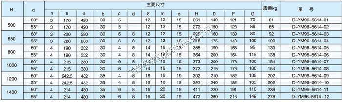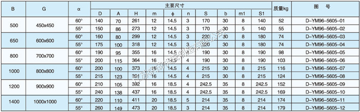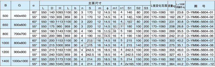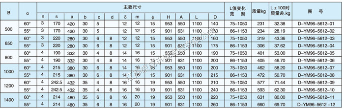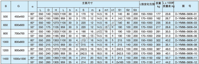 說(shuō)明:1、表中尺寸和質(zhì)量系按L=550毫米、β=18°編制;2、圖中已包括上部聯(lián)接用緊固件;3、管體采用耐磨材料整體鑄造。
