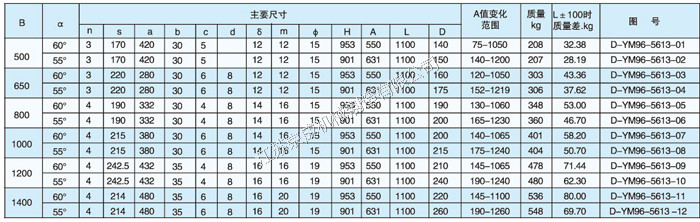 說(shuō)明:1、表中尺寸和質(zhì)量系按L=1100毫米、β=18°編制;2、圖中已包括上部聯(lián)接用緊固件;3、管體采用耐磨材料整體鑄造。