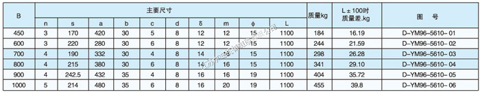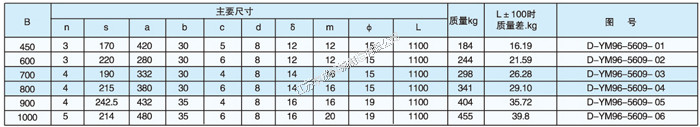 說(shuō)明:1、表中尺寸和質(zhì)量系按L=1100毫米編制;2、圖中已包括上部聯(lián)接用緊固件;3、管體采用耐磨材料整體鑄造。