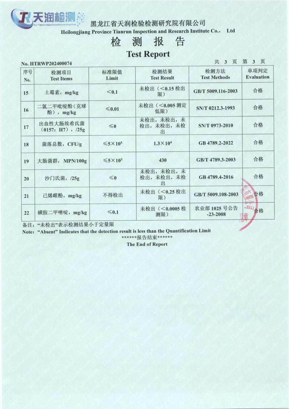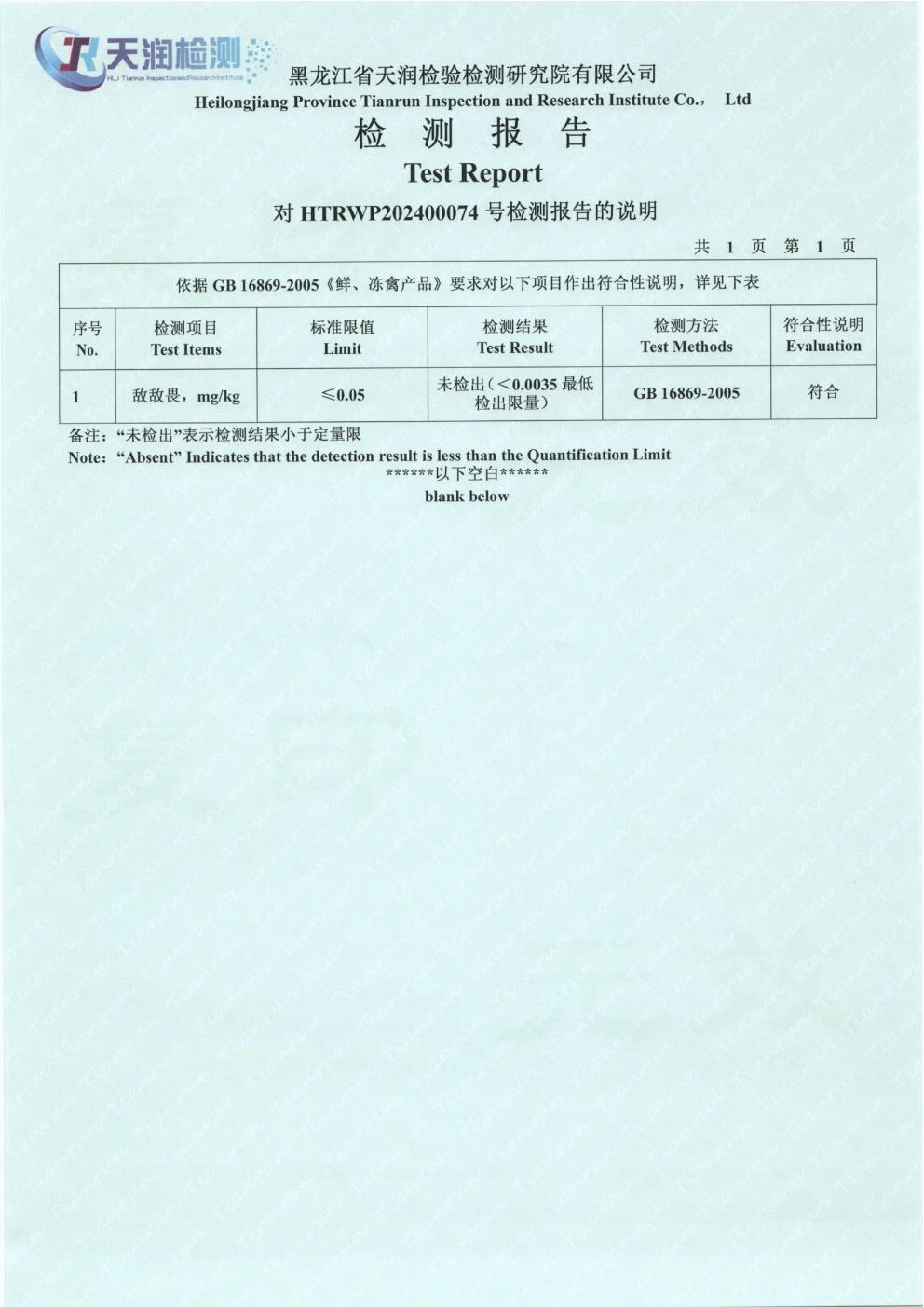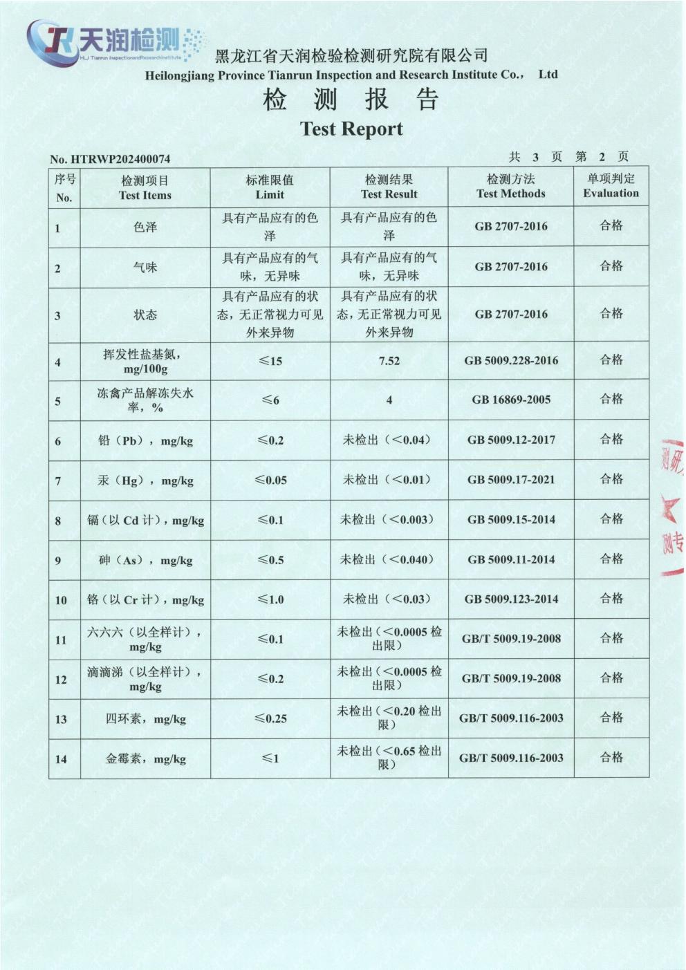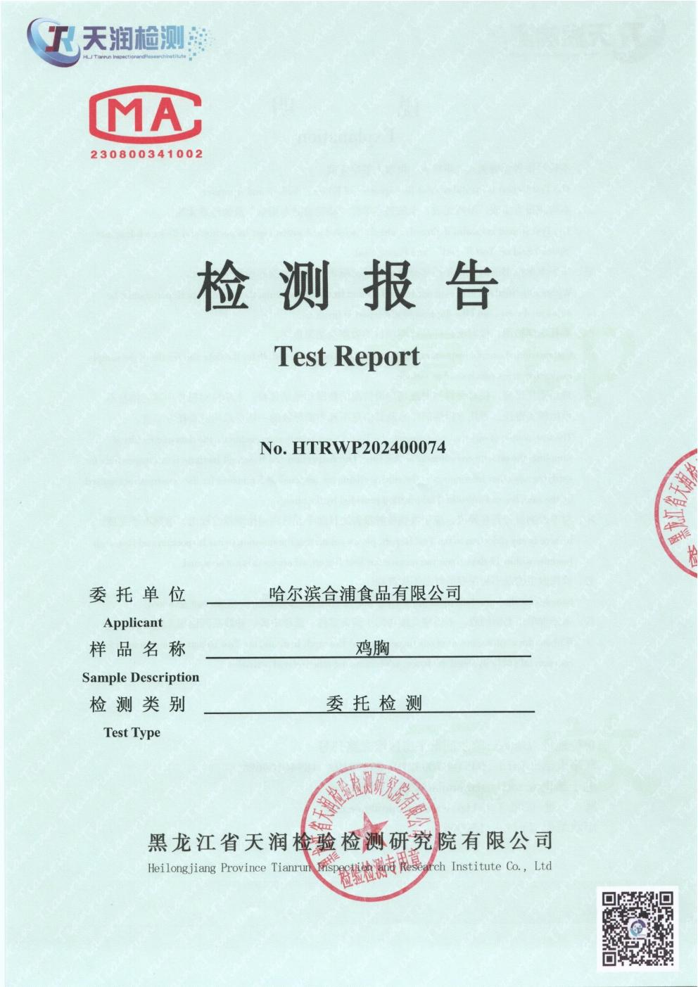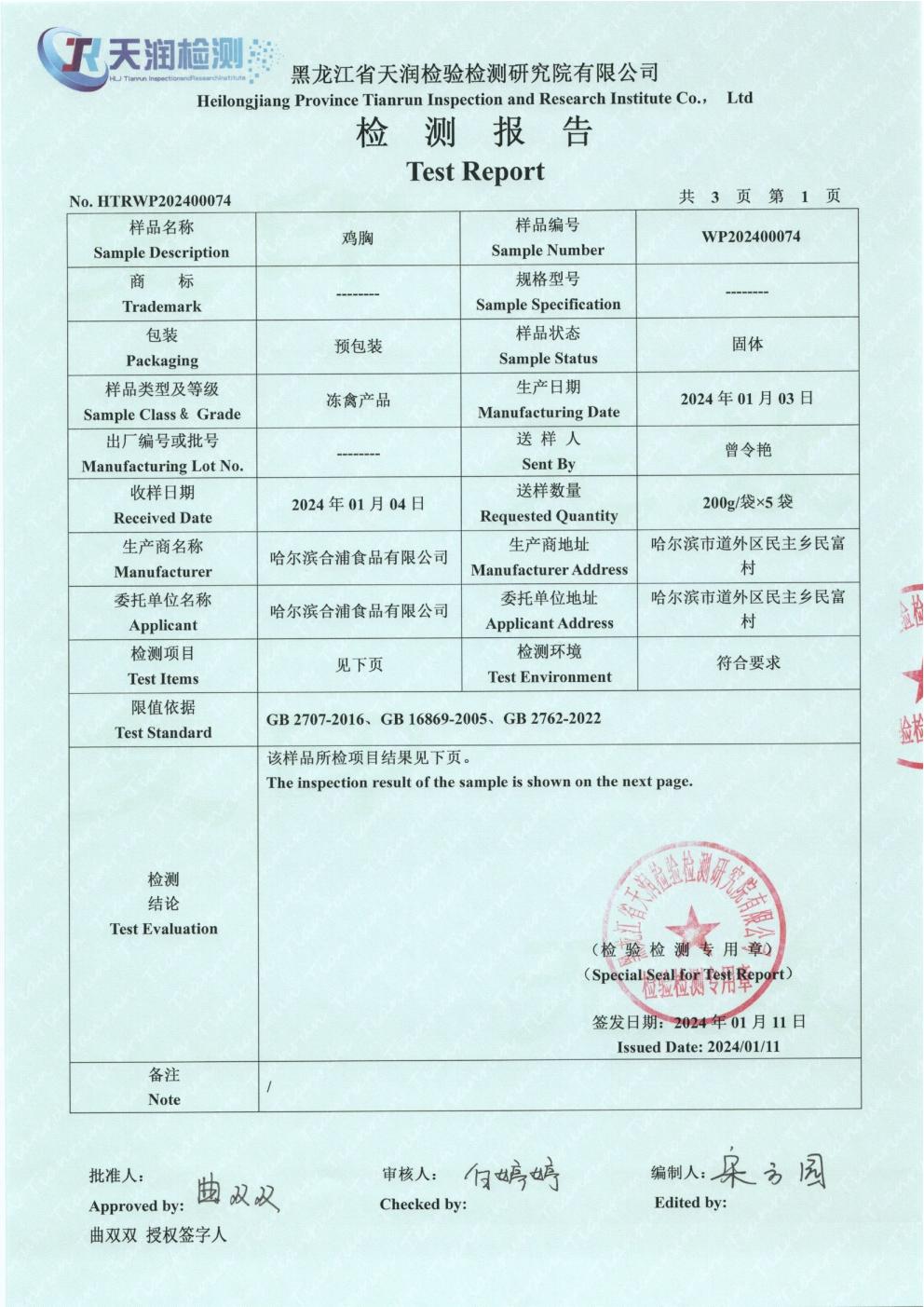 2024年1月份雞肉產(chǎn)品檢測報告