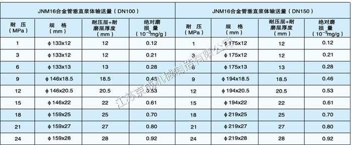 注:除表中所列規(guī)格尺寸外,高壓耐磨管件壁厚可根據(jù)磨損率和實(shí)際漿體輸送量增減。